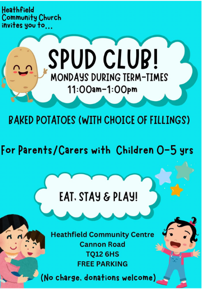 During term times parents and carers with children aged 0-5 are welcome to the spud club!